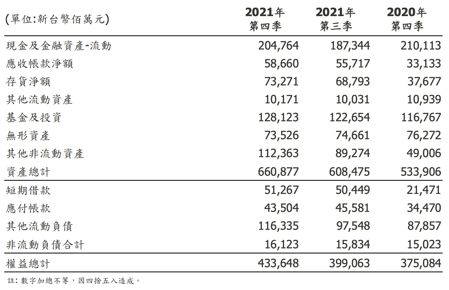 附錄:聯發科 2021 年資產負債表