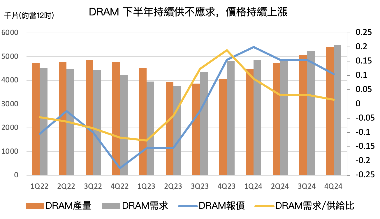 FY2024Q3 受惠記憶體報價上漲獲利明顯增加,預計 DRAM、NAND Flash 下半年報價將持續上漲