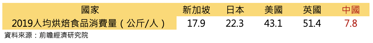 近年來中國烘焙市場成長速度快,根據前瞻產業研究院報吿,中國烘焙市場 2014 年到 2019 年以 7.4% CAGR (年複合成長率)成長,顯示整體烘焙市場具備高成長動能。