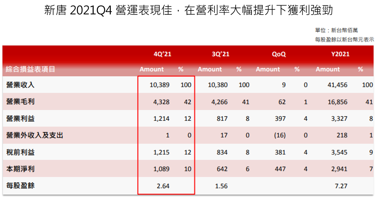 - 新唐 2021Q4 營運概況