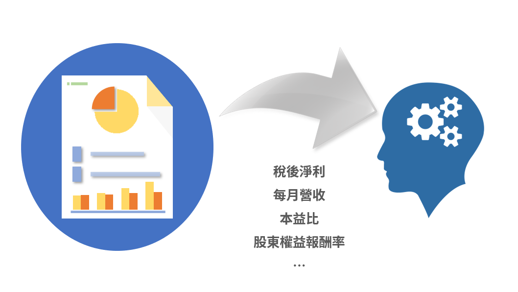 價值投資,是根據基本面分析做決策的其中一種投資方法,換句話說,這種投資方法會運用營運財報資料做分析,如下圖,常被拿來分析的財務數據包含稅後淨利、營收、本益比(價格除以EPS)、股東權益報酬率(又稱ROE)等,作深度分析、找出優質且被低估的股票。