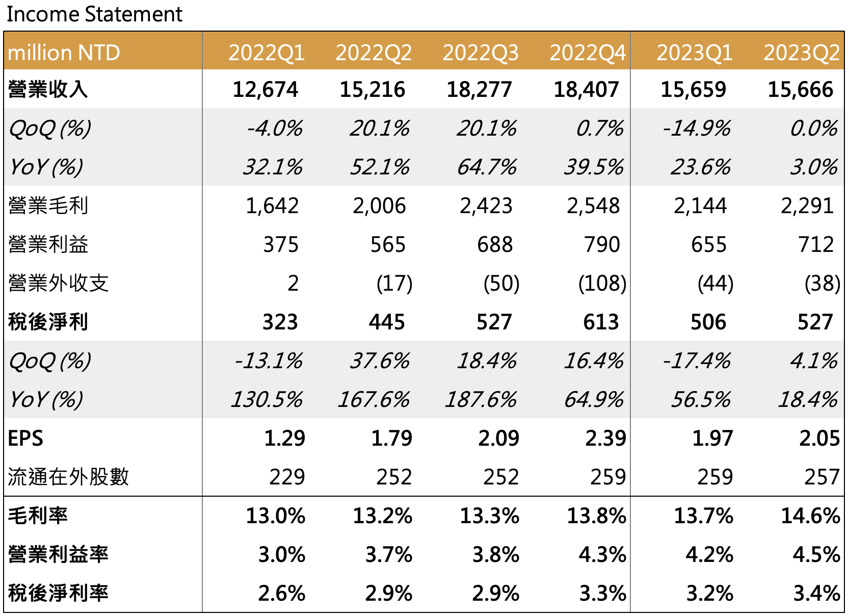 - 展望 2023 下半年,預計 Q4 隨歐洲市場庫存調整完畢、印度訂單放量,整體營收將持續成長