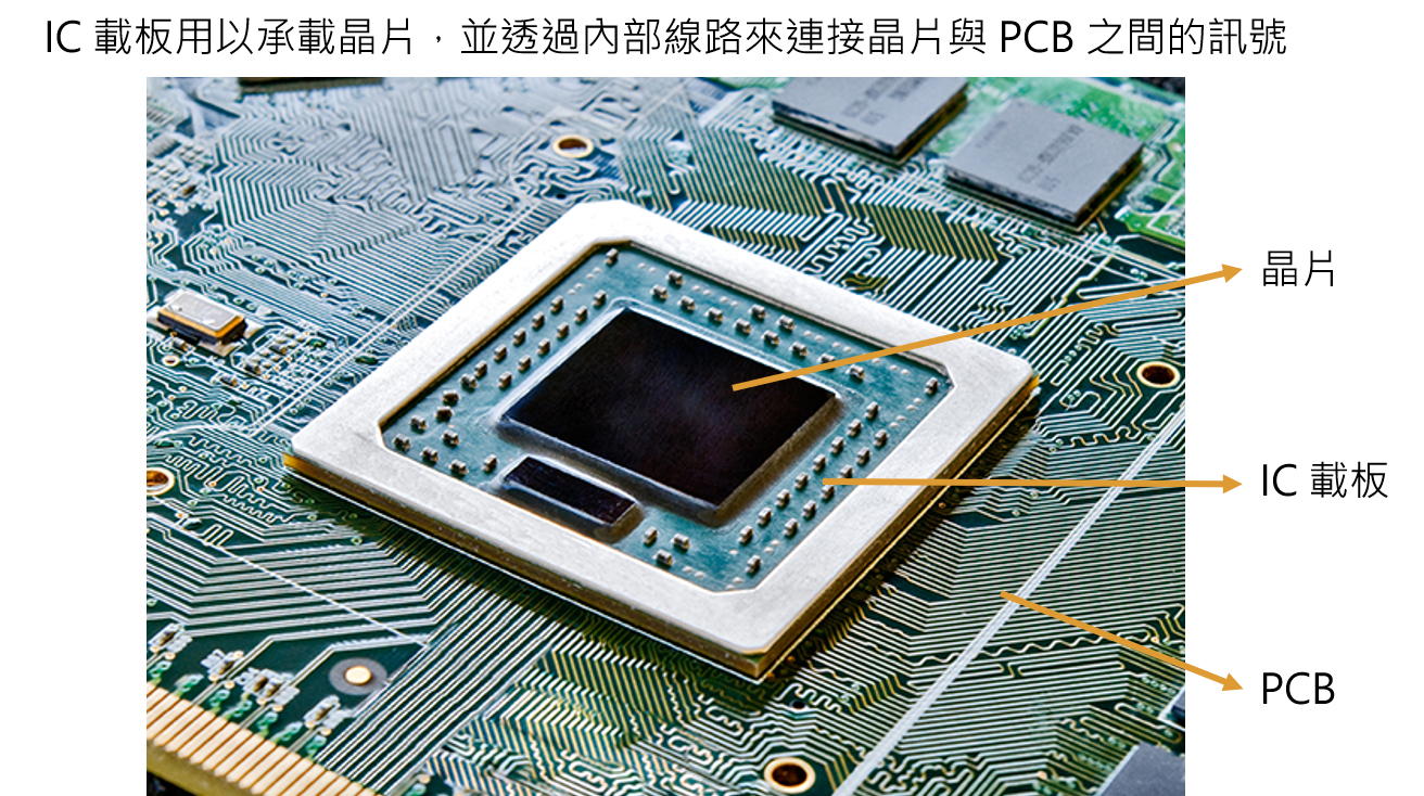 現代 IC 設計得越來越複雜,對於晶片的佈線密度、傳輸速率及散熱效率等要求提高,使得能夠提供高階晶片(如 CPU、GPU)更好封裝品質的 IC 載板逐漸取代導線架,用來連結晶片和 PCB 之間的訊號,同時保護電路、導散餘熱。