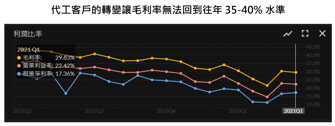 然長期來看,隨毛利率較低的中國市場占其營收比率提高,未來毛利率提升的機會並不大。