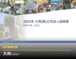 【法說會備忘錄】大同 20250723 By 法說會助理 2025-07-24 大同 2025 上半年營收 235.22 億元,電力、電子代工為獲利主力。電力事業在手訂單逾 200 億元,積極拓展美日等海外市場,觀音新廠將增變壓器產能。不動產大同莊園三期 2027 年入帳。展望電力事業雙位數成長。 0