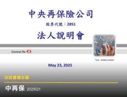 中再保 (2851) 為台灣專業再保險公司,2025 前三季淨利達 16 億,EPS 2.00 元,綜合率 89.7% 顯著改善。未來將深化風險管理,鞏固國內業務,並以利潤導向發展國際再保業務。