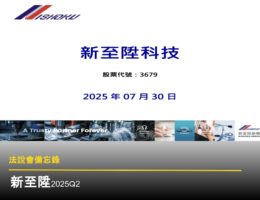【法說會備忘錄】新至陞 20250730 By 法說會助理 2025-08-05 新至陞 2025Q2 營收 11.16 億,受匯損致單季虧損,然資訊產品與智慧視覺本業穩健。下半年保守,將續擴越南廠增產能,專注高毛利產品以優化財務表現。 0