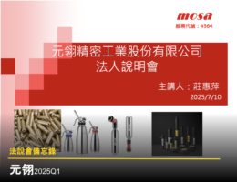 【法說會備忘錄】元翎 20250710 By 法說會助理 2025-07-11 元翎 2025Q1 營收年增 71%,受鋼瓶稼動率影響致稅後淨損 8100 萬元。公司積極轉型,優化高壓氣體鋼瓶、發展車用氣體發生器,並拓展醫材及穿戴裝置等高利潤新市場,力拚提升獲利。 0