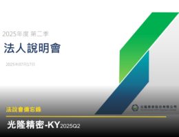【法說會備忘錄】光隆精密-KY 20250717 By 法說會助理 2025-07-17 光隆精密-KY 深耕商用車精密金屬零組件,營收穩健,毛利率逾 32%。佈局嘉義、美國新廠與日本市場,並擴大多能源引擎及新能源產品,展望未來成長。 0