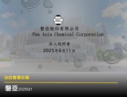 【法說會備忘錄】磐亞 20250611 By 法說會助理 2025-07-21 磐亞法說會重點:報告2024年EPS 0.95元及2025Q1 EPS 0.22元,未來營運策略聚焦於石化本業、高科技化學品開發及市場擴展。 0