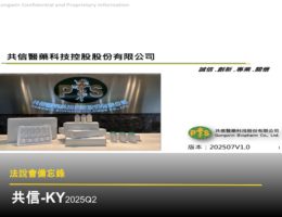 【法說會備忘錄】共信-KY 20250730 By 法說會助理 2025-08-05 共信-KY 專注微創靶向癌症新藥,人藥普羅仙安拓展中國市場,犬科 GWA103 動物藥預計 2025Q3 獲證。惡性胸腔積液將啟動臨床,積極佈局全球,驅動未來營收成長。 0