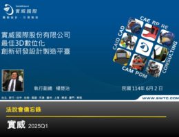 【實威法說會重點內容備忘錄】未來展望趨勢 20251202 By 法說會助理 2025-12-02 實威國際(8416)以 SolidWorks 等 3D 數位化方案與顧問服務領先市場。2024 EPS 11.01 元,2025 前三季 8.34 元。佈局 AI、自動化、數位製造,深化顧問服務,預期 2026Q1 營收成長,看好台灣資通訊與 AI 產業需求。 0