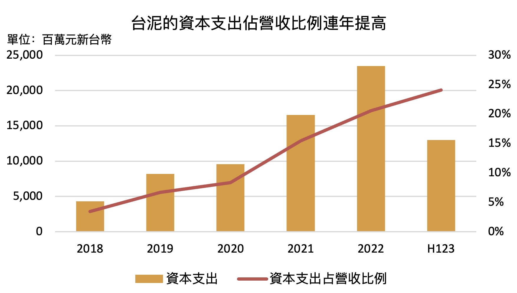 台泥近年來積極發展再生能源,因此大幅提升資本支出,投資初期尚未看到成效,影響自由現金流。