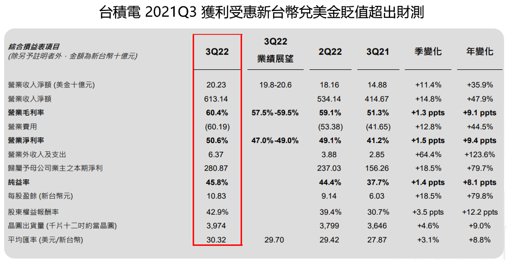 台積電(市:2330)今日召開 2022Q3 法說會,以下為重點更新: