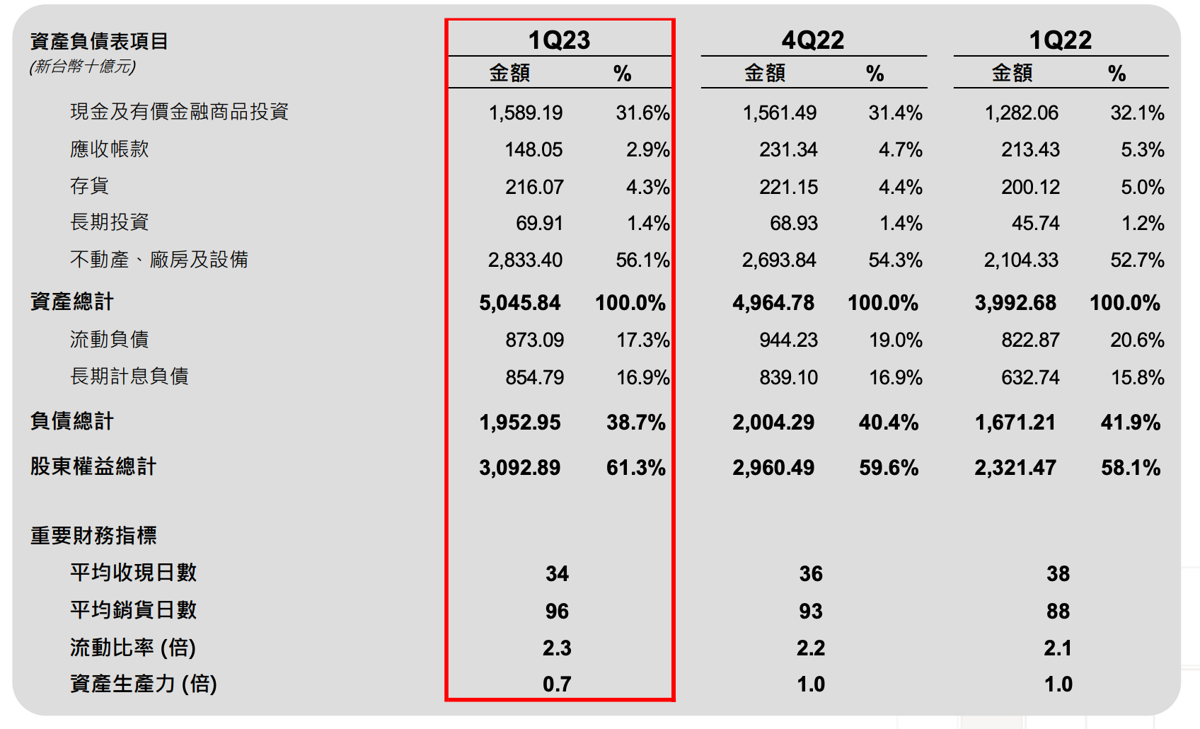 1.台積電 2023Q1 因產能利用率降低,營收僅達財測低標,然因成本控管得宜,毛利率超出財測及市場共識