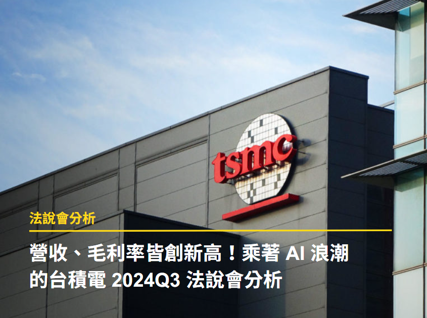 ♦ 推薦閱讀:台積電 2024 最新法說會備忘錄(10/17 更新)