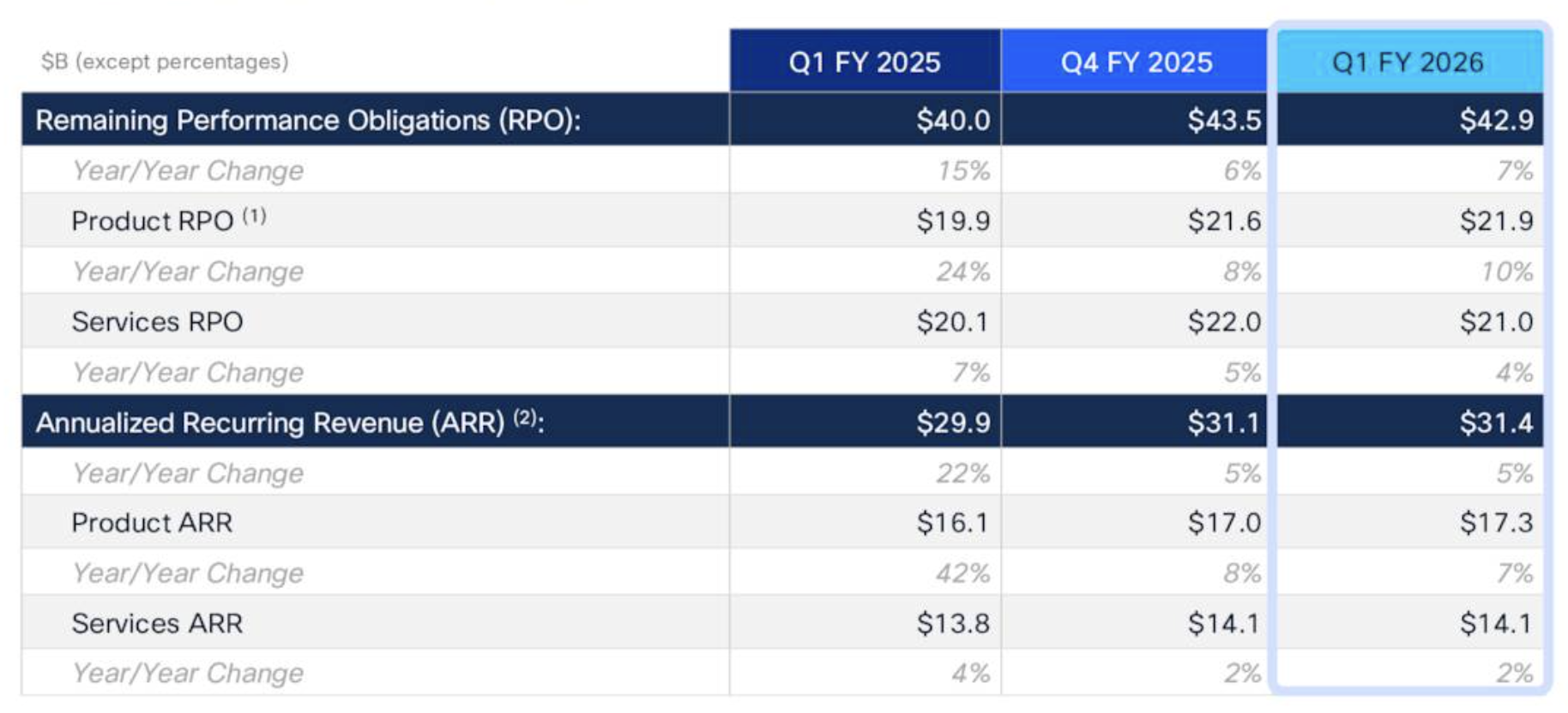 Total RPO (Remaining Performance Obligations):$42.9B,年增 7% 。