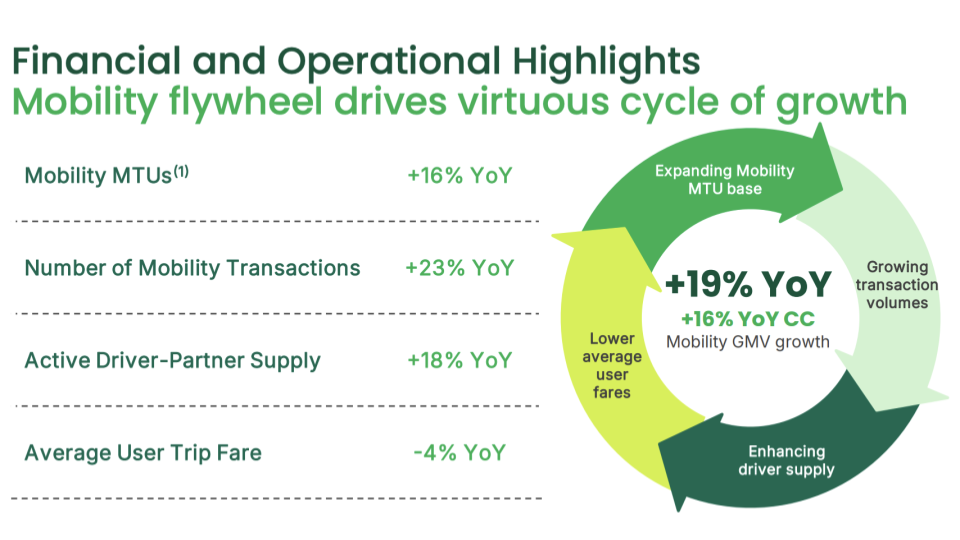 - 移動出行(Mobility)與配送(Deliveries)業務 GMV 加速增長,生態系統飛輪效益顯現。