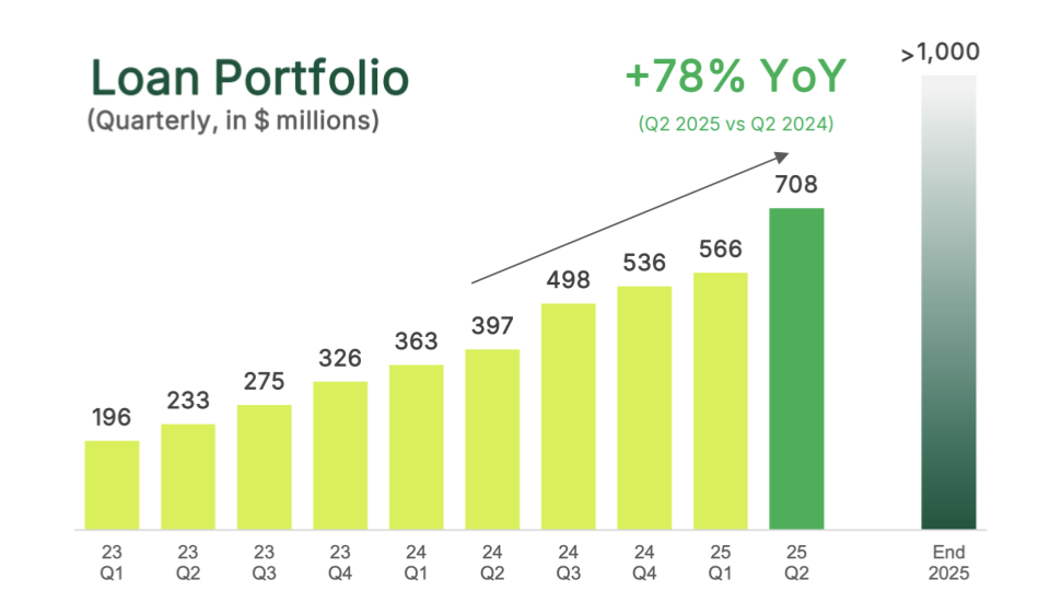 - 高速增長與規模擴大:金融服務是 Grab 增長最快的部門 。Q2 營收年增 41% (固定匯率計增長 38%) 。**貸款組合(Loan Portfolio)**飆升 78%,達到 7.08 億美元 ,並預計到年底將超過 10 億美元 。