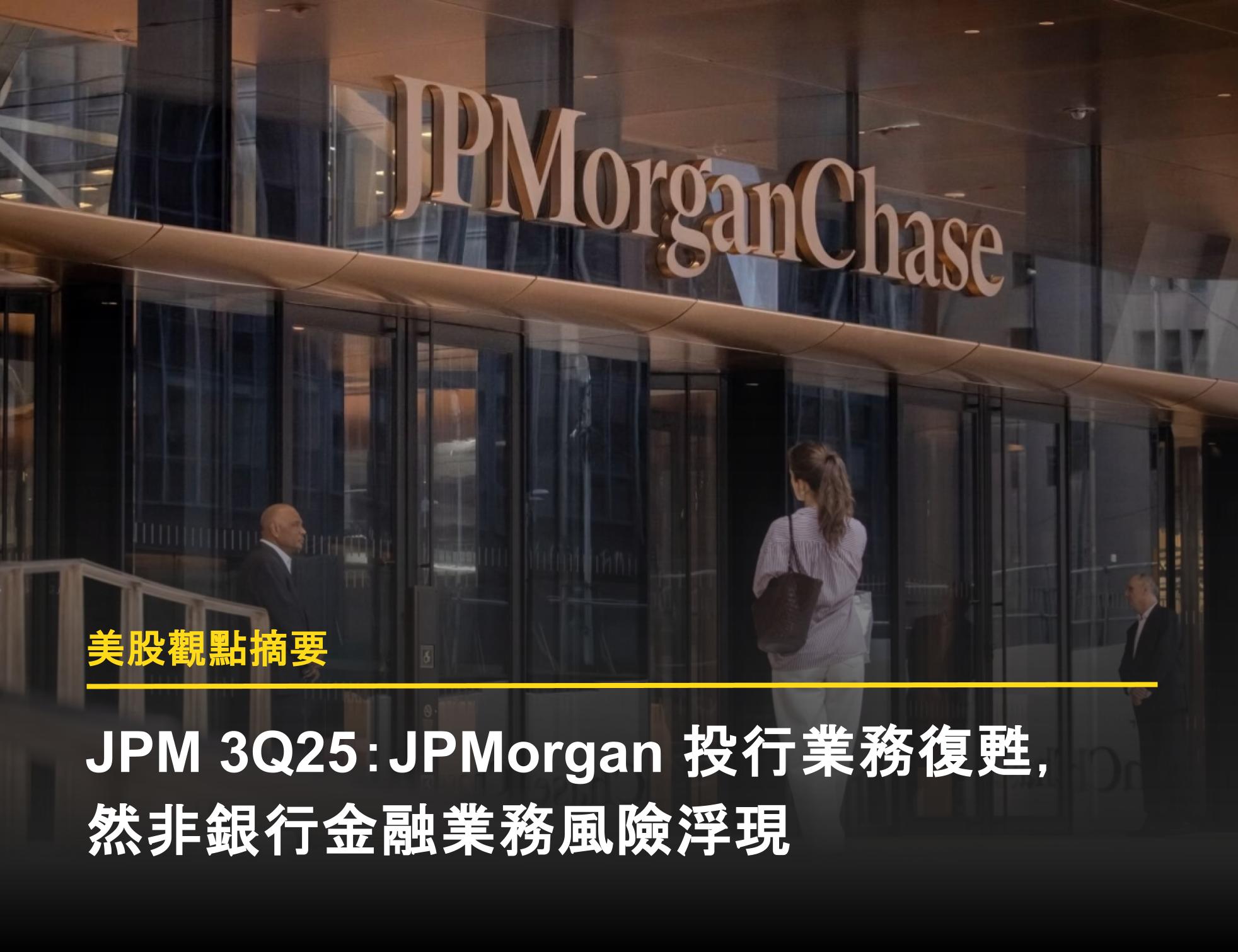 - JPM FY2025Q3 財報強勁,2026 年 NII 展望提供下檔支撐。