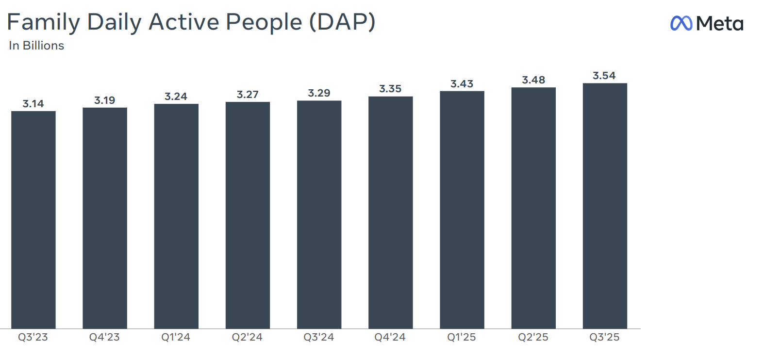用戶黏性持續強勁: 應用家族每日活躍用戶總數(DAP)超過 35 億,反映了其社交護城河依然穩固。