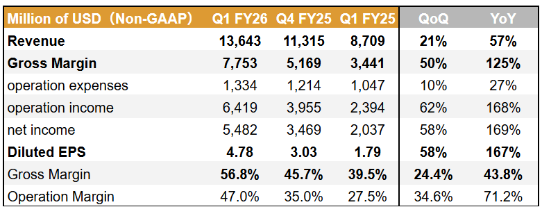 FY2026Q1 獲利大爆發,毛利率達 56.8% 展現強大定價權