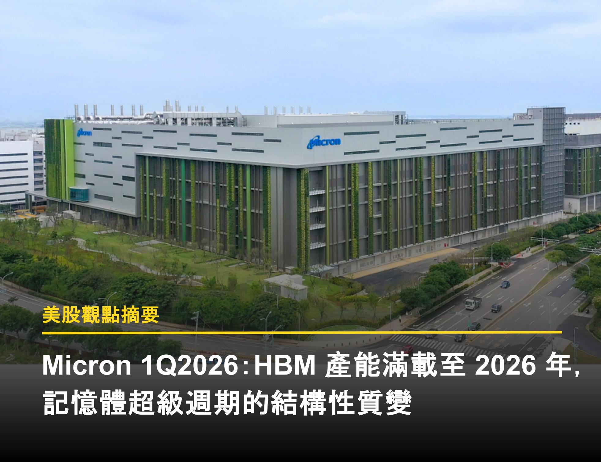 Micron(Nasdaq:MU)於 2025 年 12 月 17 日召開 FY2026Q1(CY2025/9~11 月)電話會議,在這場被市場視為「記憶體超級週期」確認點的法說會中,公司繳出了營收年增 57%、毛利率跳升至近 56.8% 的驚人成績單。更重要的是,管理層確認 HBM(高頻寬記憶體)產能直至 2026 年底皆已售罄。這顯示記憶體產業已脫離過往單純的週期循環,進入由 AI 驅動的結構性成長階段。以下為市場核心觀點更新: