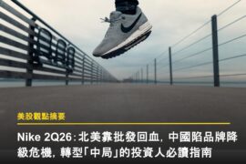 - Nike FY2026Q1 財報優於預期,北美與批發通路復甦,印證「Win Now」策略奏效