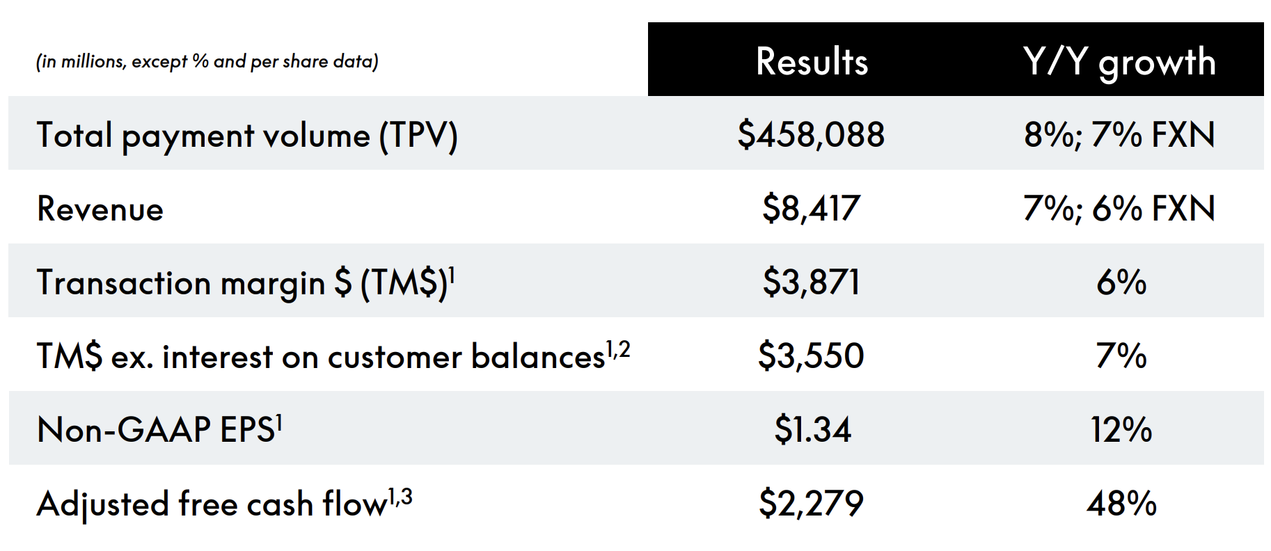 總支付交易量 (TPV):達 4,581 億美元 (YoY +12%),表現穩健。