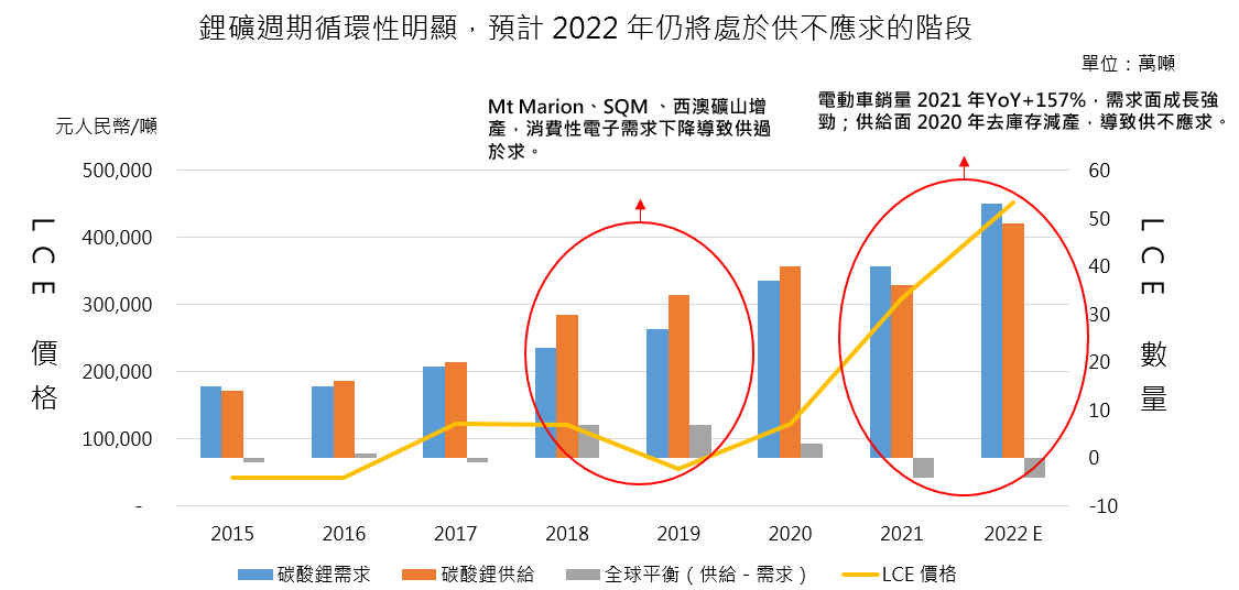 展望 2022 下半年,供給方面根據全球各家礦商展望,預計 LCE(碳酸鋰) 2022 年供給量約為 49 …